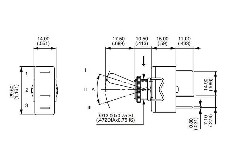 SWITCH TOGGLE SPDT ON-OFF-ON LONG BUSH