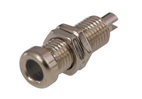 Non insulated 4mm panel mounting banana socket. Material is nickel plated brass.
