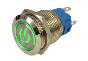 SWITCH PUSH MOMENTARY SPDT ON-(ON) ILLUMINATED GREEN 19mm