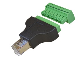 Adapter RJ45 Male to 8-Pin Screw Terminal.