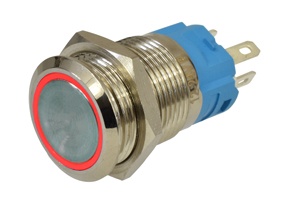 SWITCH PUSH LATCHING SPDT ON-ON ILLUMINATED RED 220V 22mm