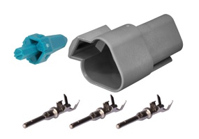 3-way AT series connectors for marine, automotive, heavy machinery, and agricultural applications. These in-line connectors are IP68 rated and offer high performance and high current carrying capacity.