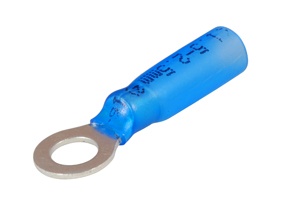 Crimp eyelet with shrinkable material that is adhesive-coated on the inside. Prevents the wire from pulling back, thus being exposed to the elements. Resistant to petrol, oil, salt water, battery acid, and cleaning agents. Suitable for cables from 1.5mm² to 2.5mm².