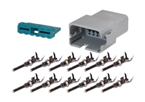 12-way AT series connectors for marine, automotive, heavy machinery, and agricultural applications. These in-line connectors are IP68 rated and offer high performance and high current carrying capacity.