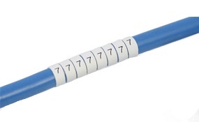 Heat shrinkable cable markers that will shrink by 33% of their nominal diameter when heated above 120°c.  Printing is black against white background.