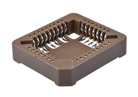 SMD PLCC IC base socket for use with industry-standard pinouts. Two slots permit the easy extraction of the IC.