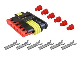 AMP SuperSeal 1.5 latching IP67 socket housing, which is resistant to ozone, salt, fuel, motor engine oil, etc, making it suitable for use in marine, automotive, and recreational vehicle use.