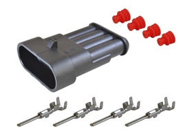 AMP SuperSeal 1.5 latching IP67 socket housing, which is resistant to ozone, salt, fuel, motor engine oil, etc, making it suitable for use in marine, automotive, and recreational vehicle use.