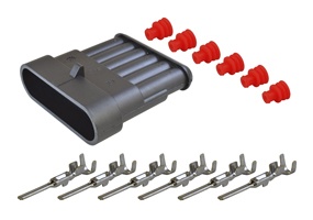 AMP SuperSeal 1.5 latching IP67 socket housing, which is resistant to ozone, salt, fuel, motor engine oil, etc, making it suitable for use in marine, automotive, and recreational vehicle use.