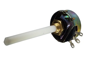 Moulded carbon track potentiometer with solid carbon brush wiper for long life application with low rotational noise.