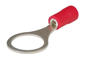 Insulated crimp eyelet terminals are suitable for cable entry wire with 0.5mm² to 1.5mm². The material is tin-plated copper.