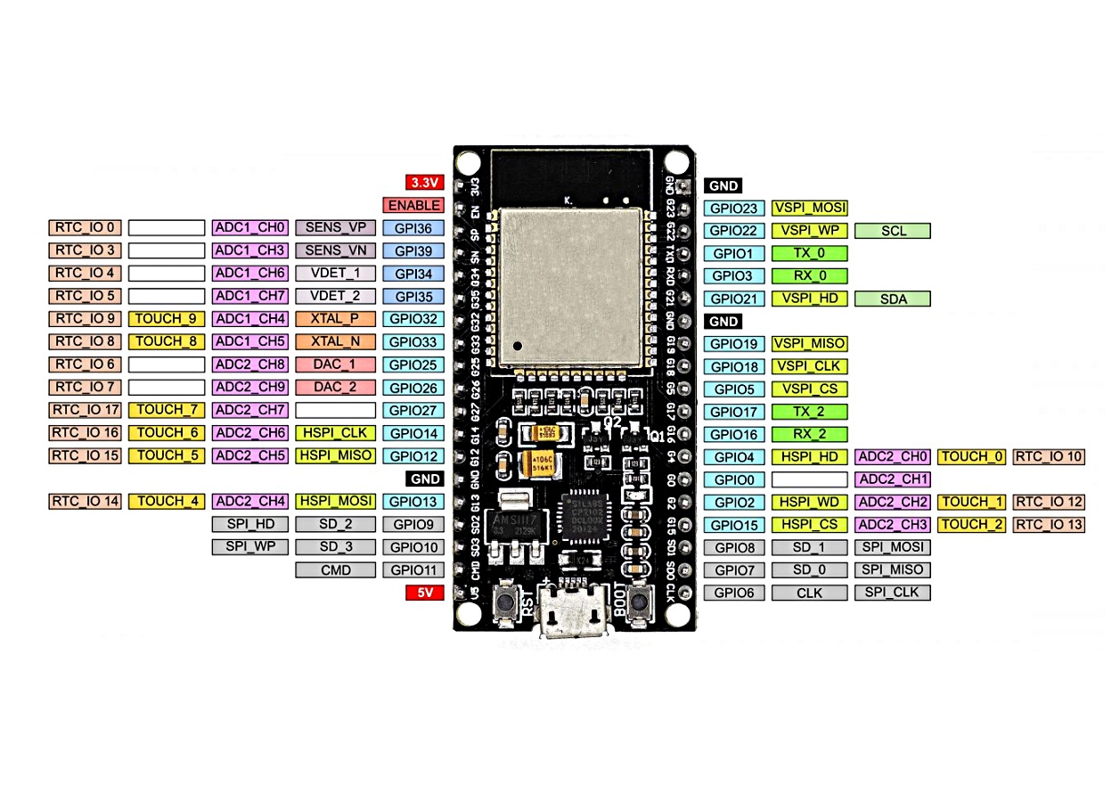 The ESP32 features an integrated antenna and RF balun, power amplifier, low-noise amplifiers, filters, and power management module. The entire solution takes up the least amount of printed circuit board area. This board is used with 2.4 GHz dual-mode Wi-Fi and Bluetooth chips by TSMC 40nm low power technology, power and RF properties best, which is safe, reliable, and scalable to a variety of applications.