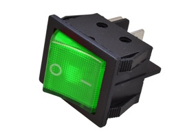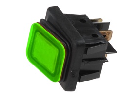 SWITCH ROCKER DPST OFF-ON IP65 ILLUMINATED GREEN